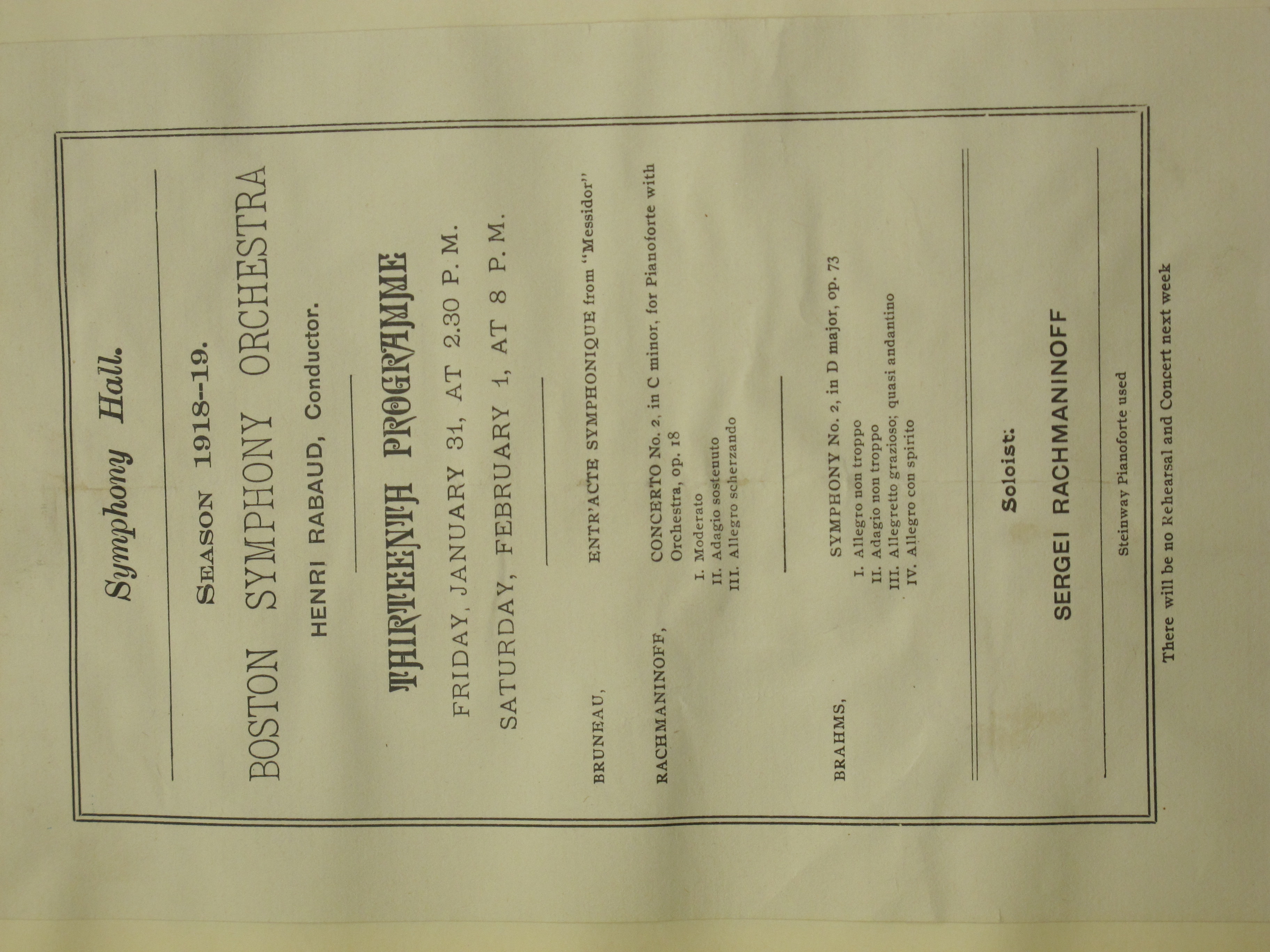 The concert began at 2.30pm. LoC, Sergei Rachmaninoff Archive, ML31.R33, Papers of Sophie Satin, boxes 82-89.