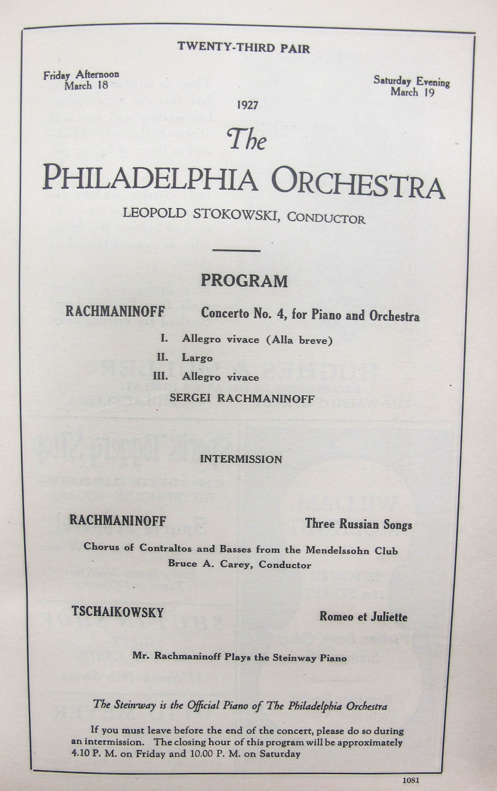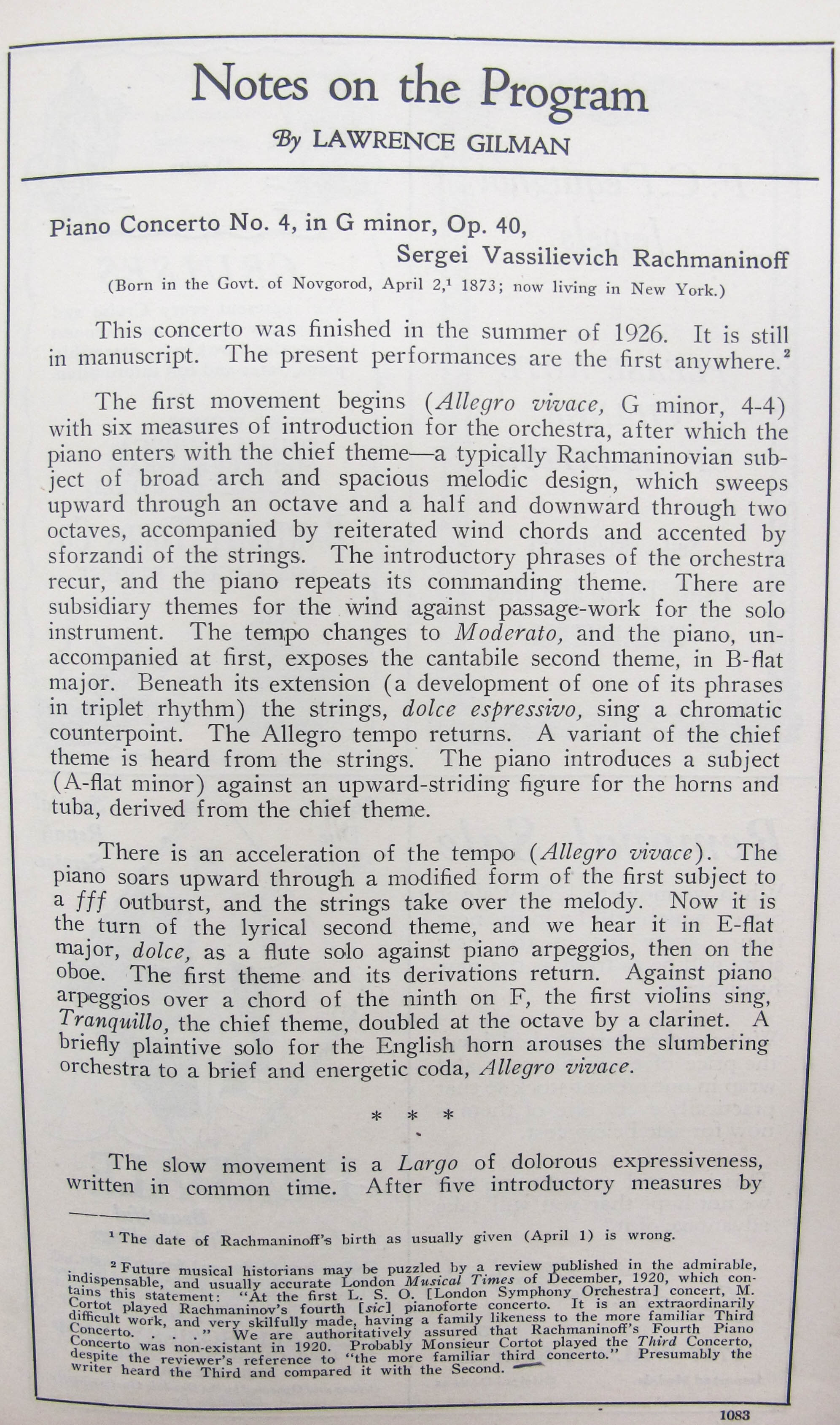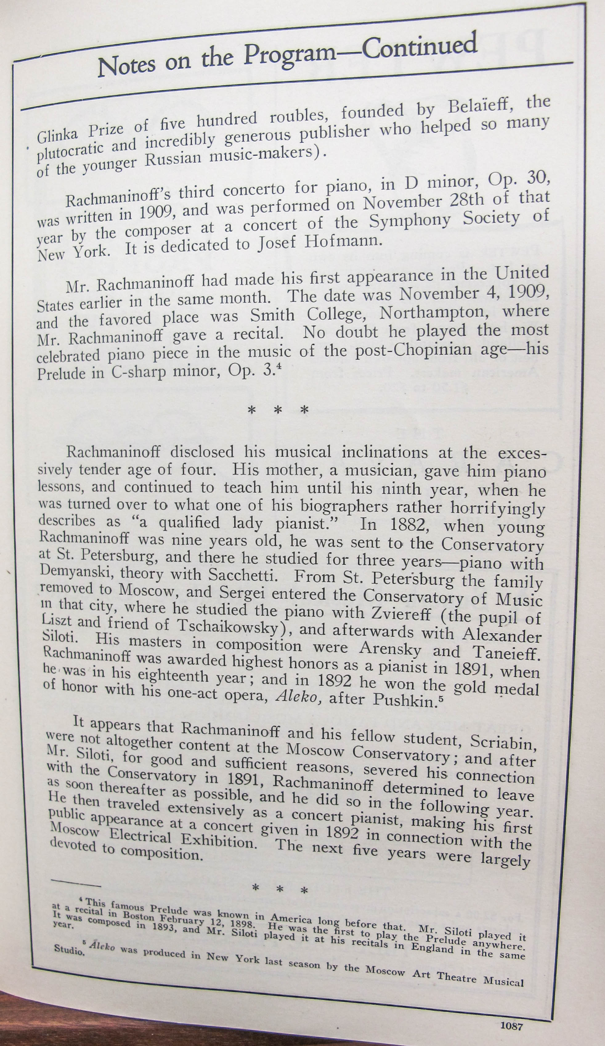Satina notes that this was the first performance of op. 40 and op. 41. LoC, Sergei Rachmaninoff Archive, ML31.R33, Papers of Sophie Satin, boxes 82-89.