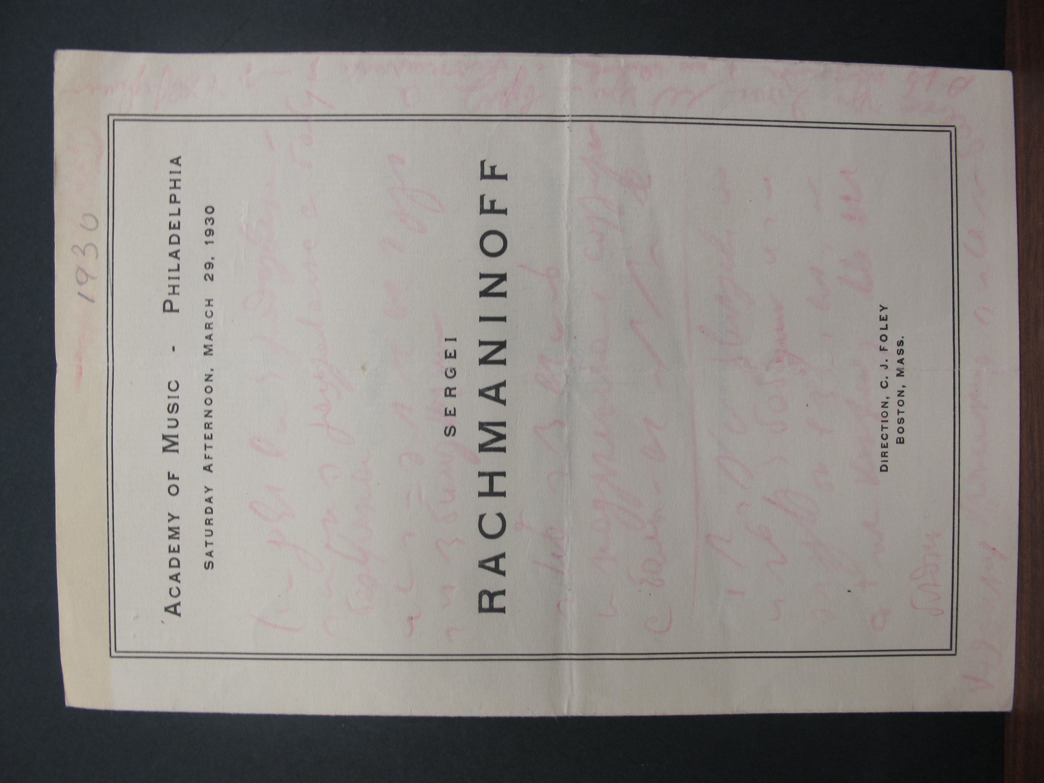 A Chopin waltz and the Prelude in C sharp minor, op. 3, no. 2, are noted as among the encores in the attached review. LoC, Sergei Rachmaninoff Archive, ML31.R33, Papers of Sophie Satin, boxes 82-89.