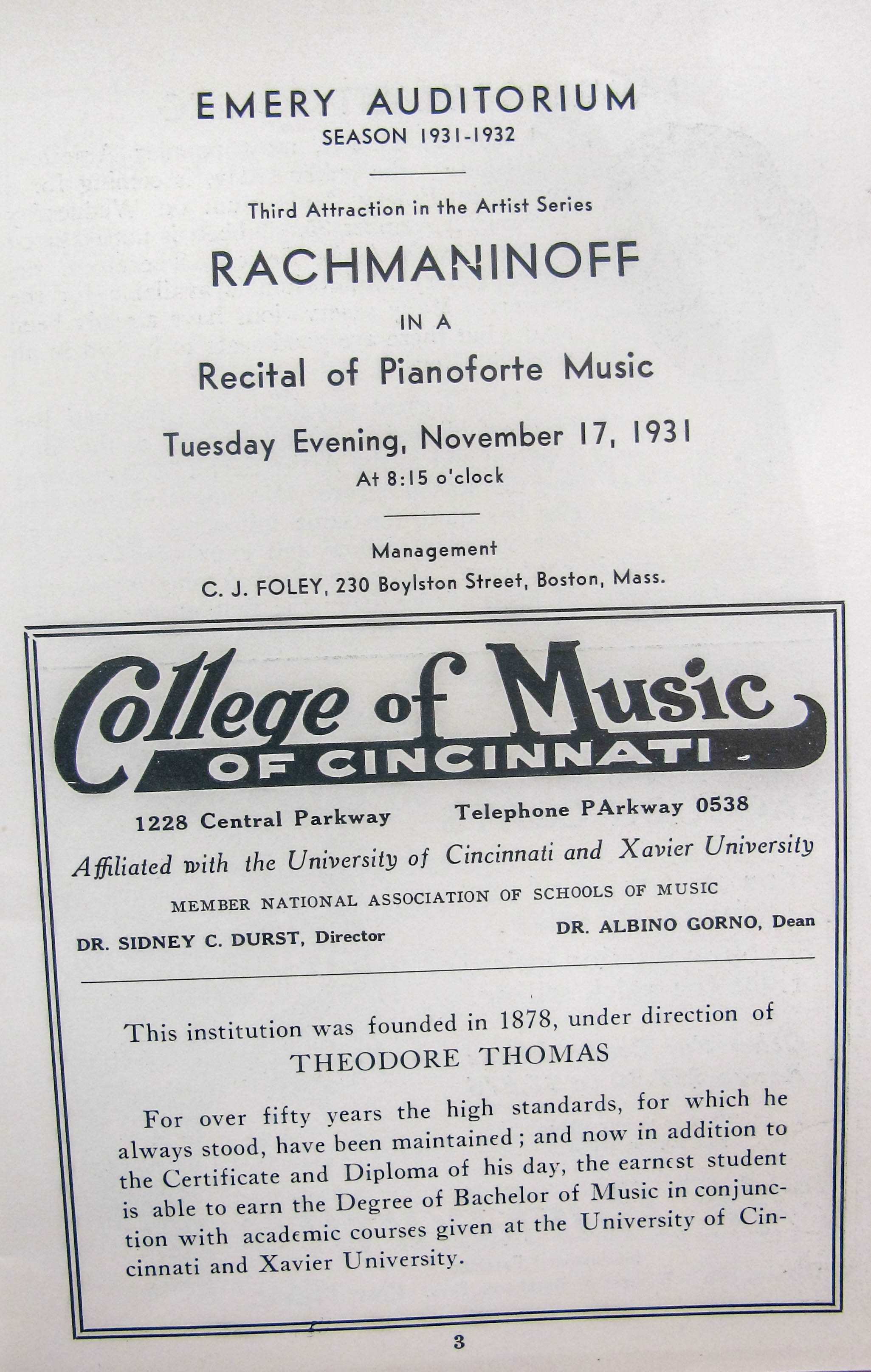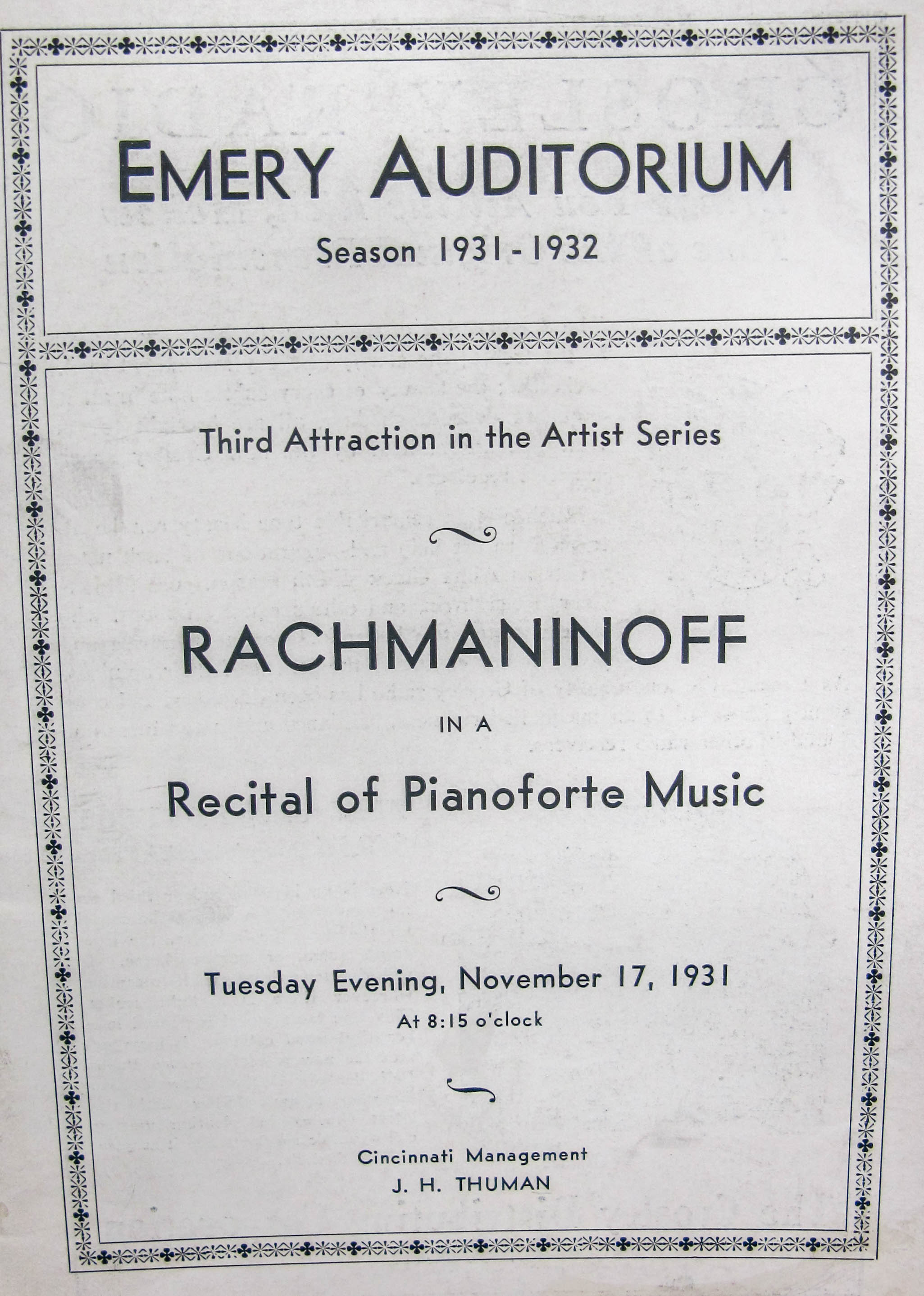 Rachmaninoff deviated from the program outlined in the attached press clipping and the attached images in the second half of the recital, substituting works of his own. Tchaikovsky's Troika, and Rachmaninoff's transcriptions of Bizet's Minuet and Rimsky-Korsakov's Bumble Bee, are noted as the encores in the attached review. LoC, Sergei Rachmaninoff Archive, ML31.R33, Papers of Sophie Satin, boxes 82-89.
