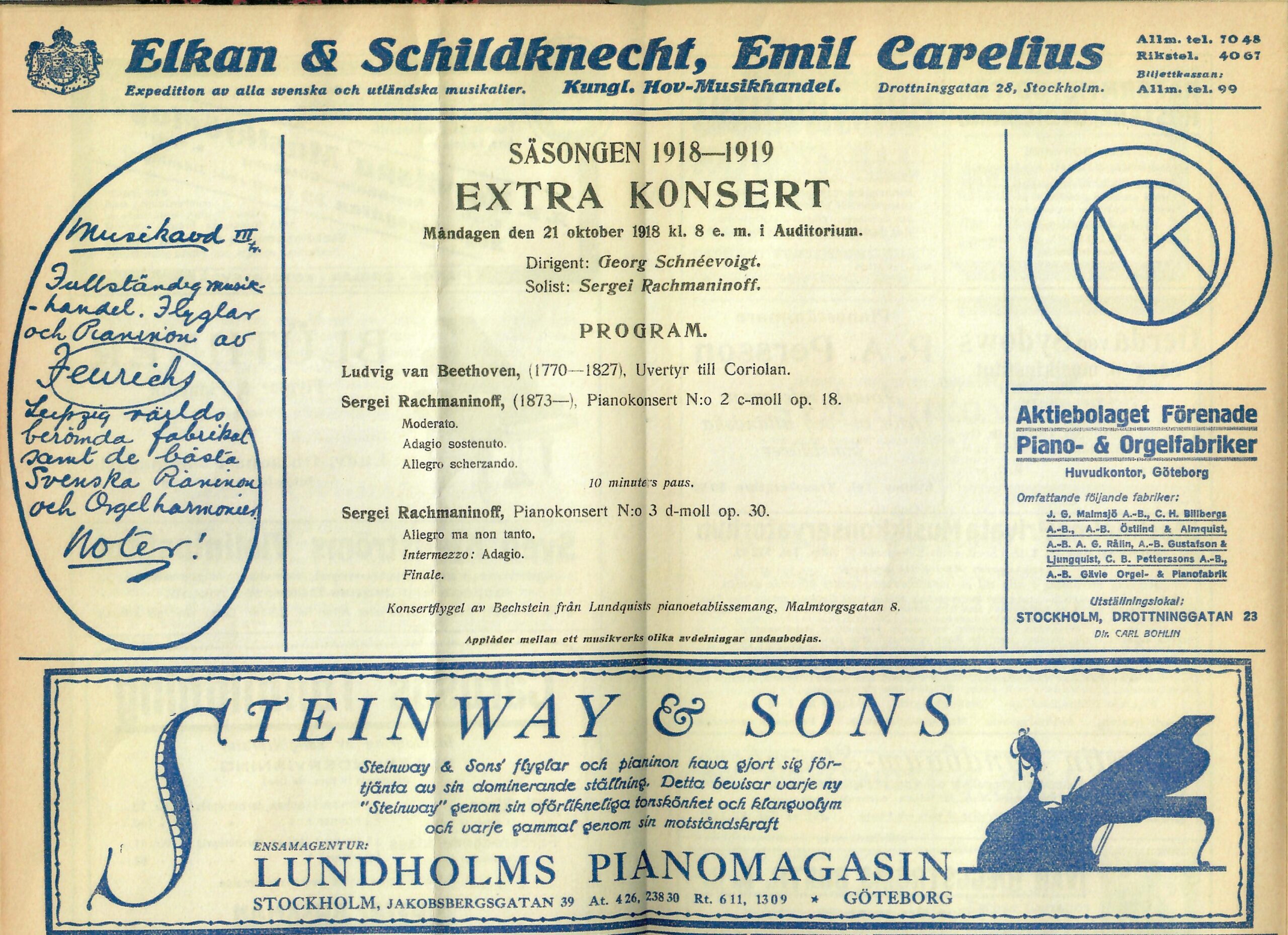 Symphony Orchestra of the Stockholm Concert Society. Georg Schnéevoigt, conductor.